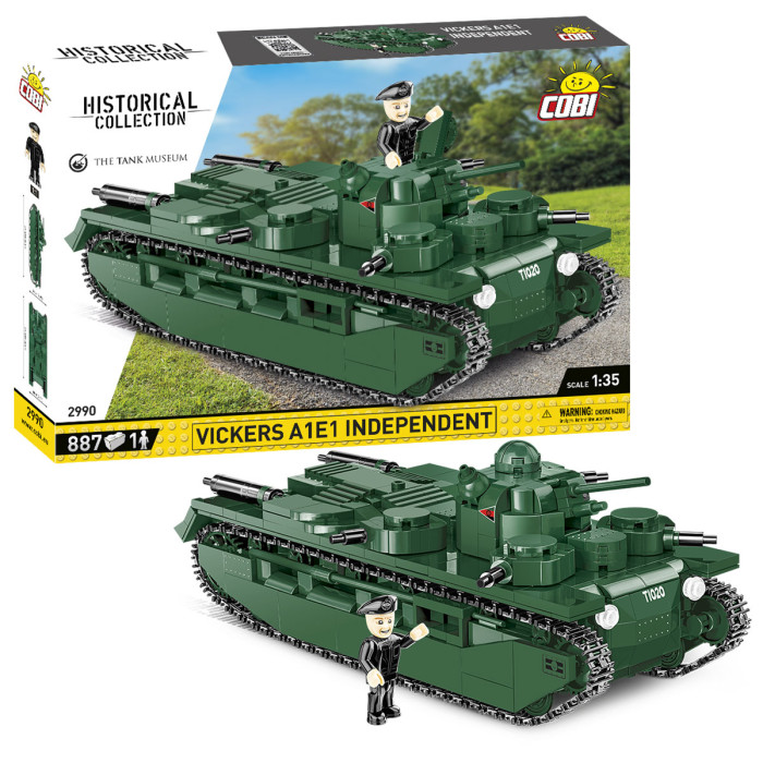 Bruk settet med 887 COBI-klosser til å bygge en realistisk reprodusert, historisk prototypetank fra The Tank Museum-samlingen. Kjøretøyet er designet i samarbeid med Tankmuseet i skala 1:35. Spesielt bemerkelsesverdig er mange detaljer, holdbare, karakteristiske trykk og de spesialiserte elementene som brukes. Modellen fortsetter serien med museumsutstillinger utgitt i blokkversjon. Mer erfarne designere vil også helt sikkert bli fristet til å bygge sovjetiske versjoner av multi-turret stridsvogner. Settet inneholder en figur av en britisk tanker i en beret med et trykt emblem fra Royal Tank Regiment! Settet kompletteres med en stor plate med navnet på settet og den trykte logoen til The Tank Museum.